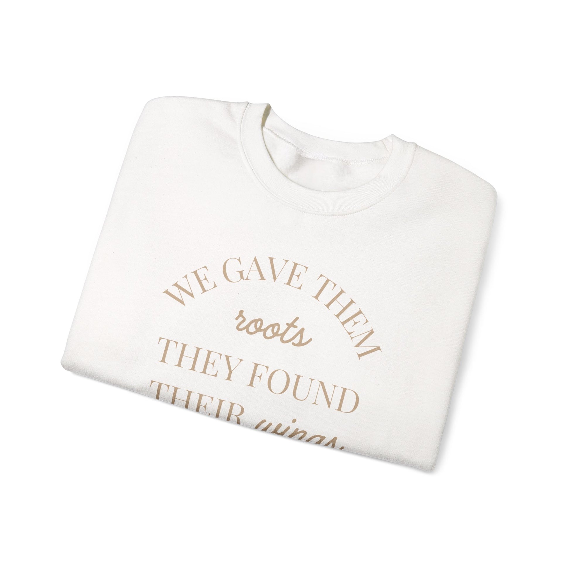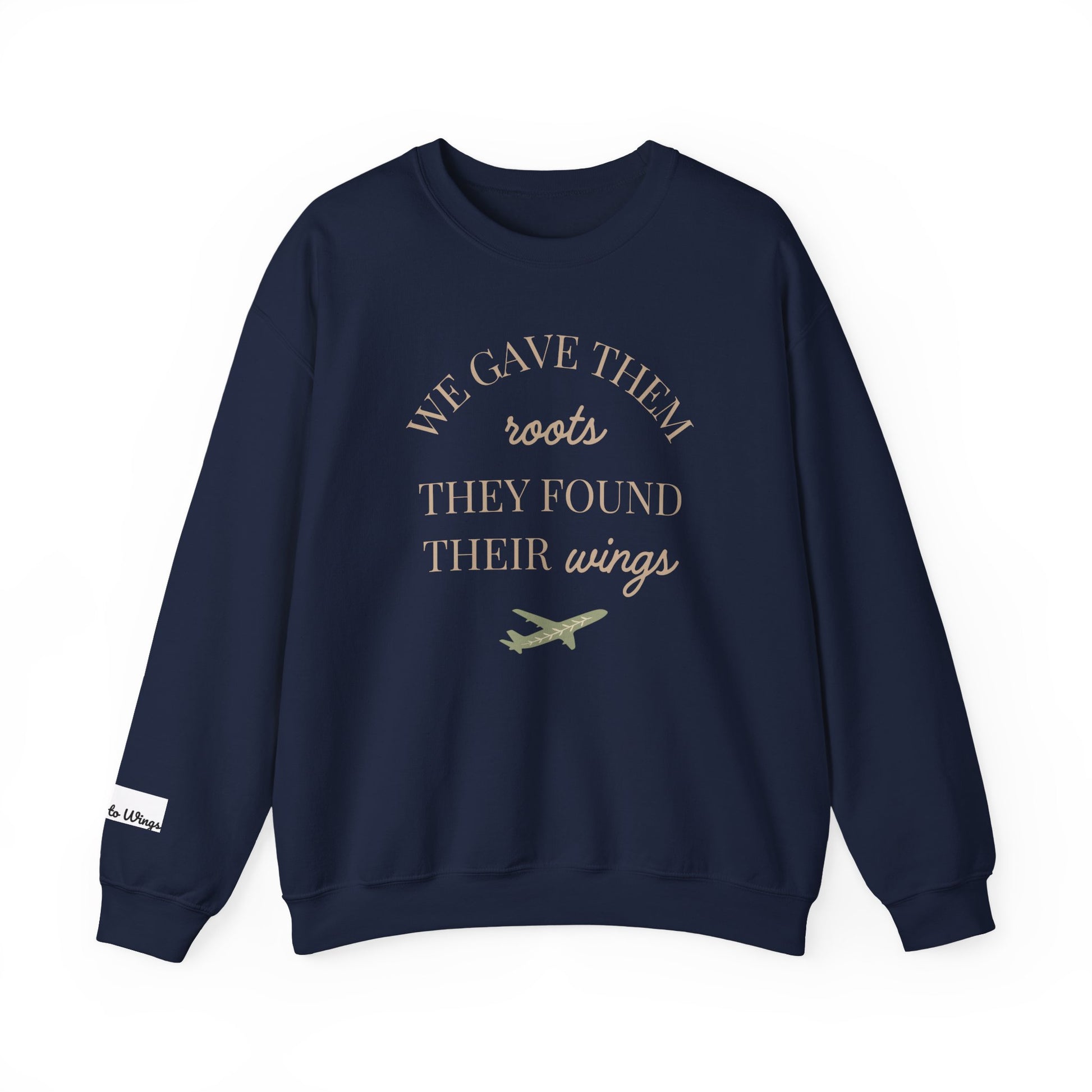 Crewneck Sweatshirt — "We Gave Them Roots They Found Their Wings" Inspirational Travel Pullover